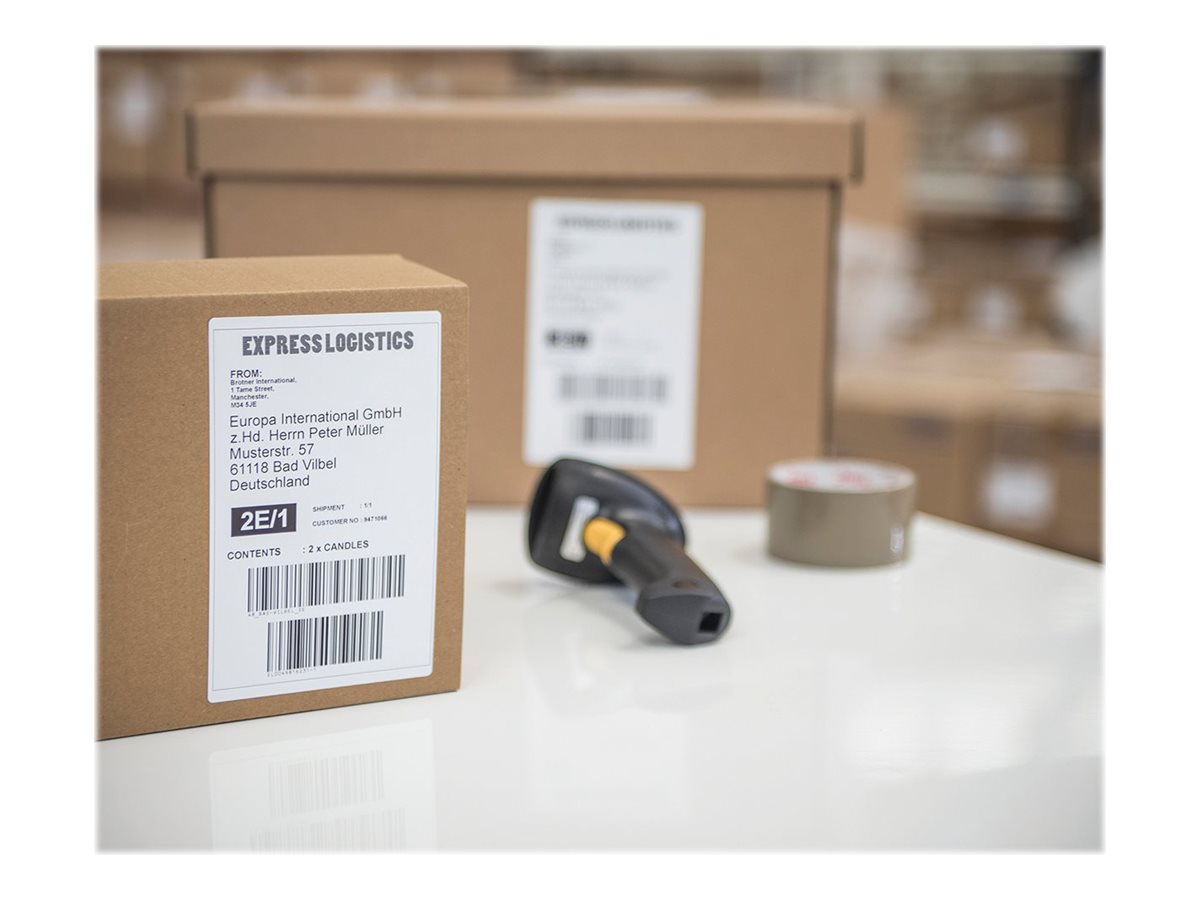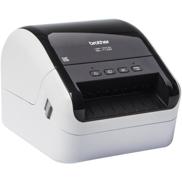 QL-1100 är utrustad med ett extra brett skrivhuvud, 4 tum (101,6 mm) – för att kunna erbjuda maximal kompabilitet med olika programvarupaket från fraktföretag och paketleverantörer.