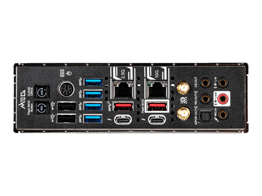 | Gränssnitt | 1 x LAN (10Gigabit Ethernet) 2 x USB 3.2 Gen 2 2 x Thunderbolt 3/USB-C Gen2 1 x ljudutgång – mini-jack 1 x mikrofon – mini-jack 1 x ljudutgång (center/subwoofer) – mini-jack 1 x ljudutgång (bakre) – mini-jack 1 x ljudingång – mini-jack 1 x TOSLINK 2 x USB 2.0 4 x USB 3.2 Gen 1 1 x LAN (2.5Gigabit Ethernet) 1 x PS/2-tangentbord/mus |