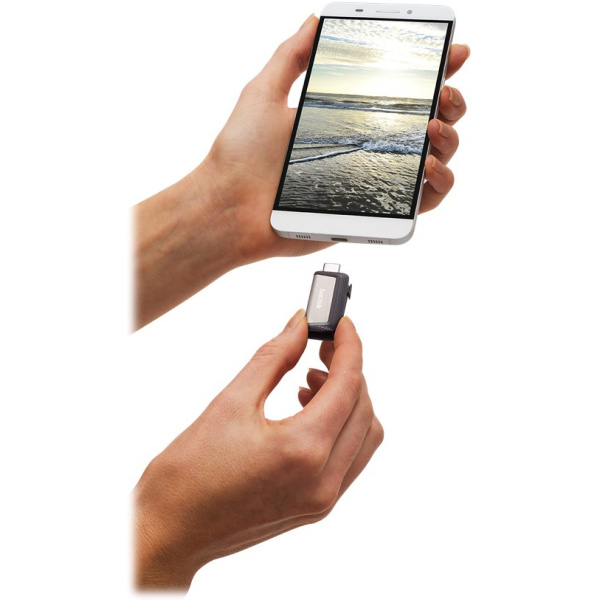 Med dubbla kontakter ger SanDisk Ultra Dual Drive USB Type-C dig möjlighet att frigöra utrymme på din smartphone eller surfplatta eller överföra filer mellan flera enheter, oavsett om den har en USB Type-C-port eller den traditionella USB Type-A-porten.